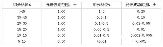 (2)在采樣設(shè)計(jì)的配樣計(jì)算和采樣施工中,擬定或采出的礦樣平均品位與其所代表的礦石的地質(zhì)平均品位之間,允許有一定的波動范圍。采樣設(shè)計(jì)和采樣施工系統(tǒng)允許的品位波動范圍,參見2。通常情況下,對主要有用組分,允許向下波動;對主要有害組分,允許向上波動;而對伴生組分,則視情況適當(dāng)放寬波動范圍。